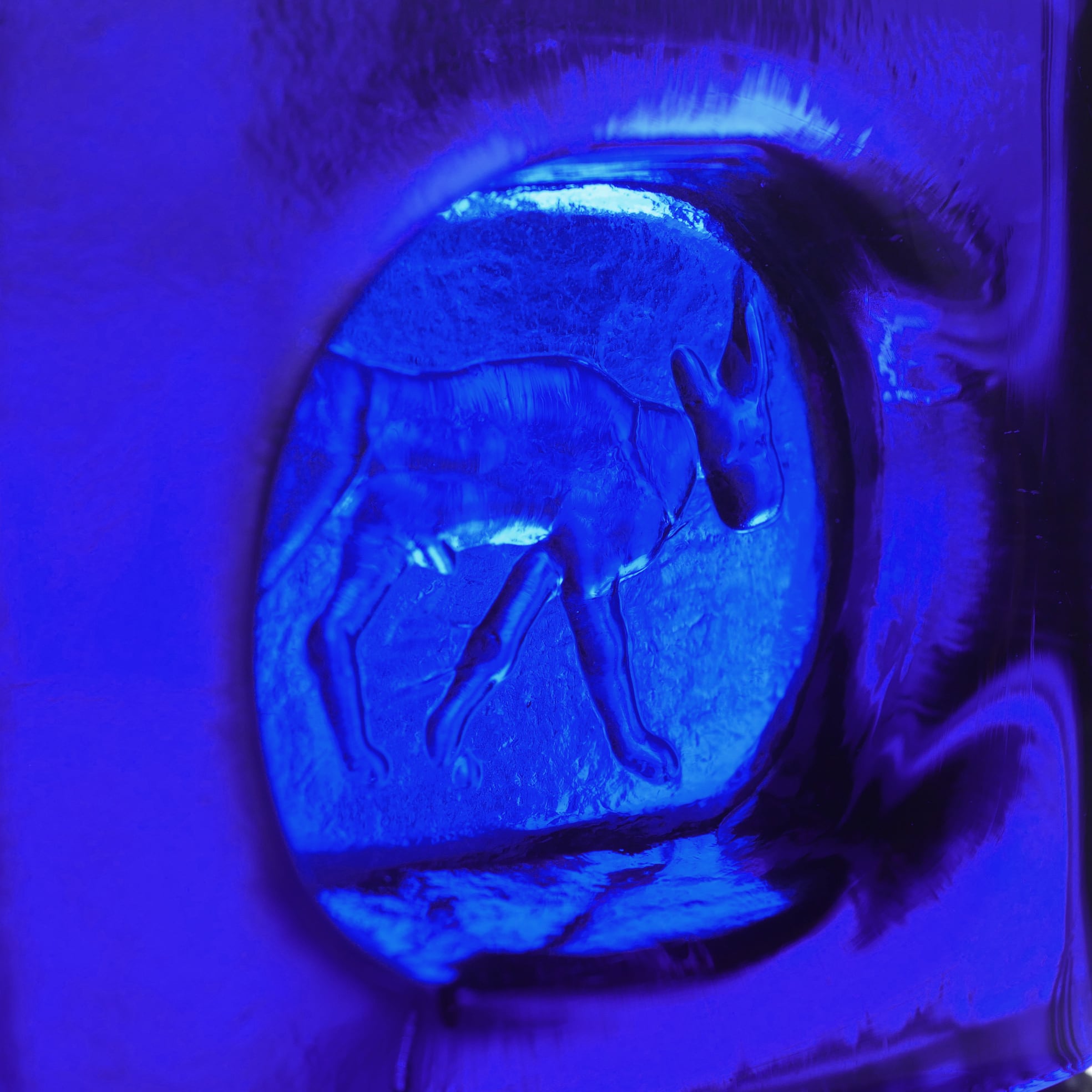 紫がかったブルーのガラスが宝石のようにきらめくエリックのガラス作品。