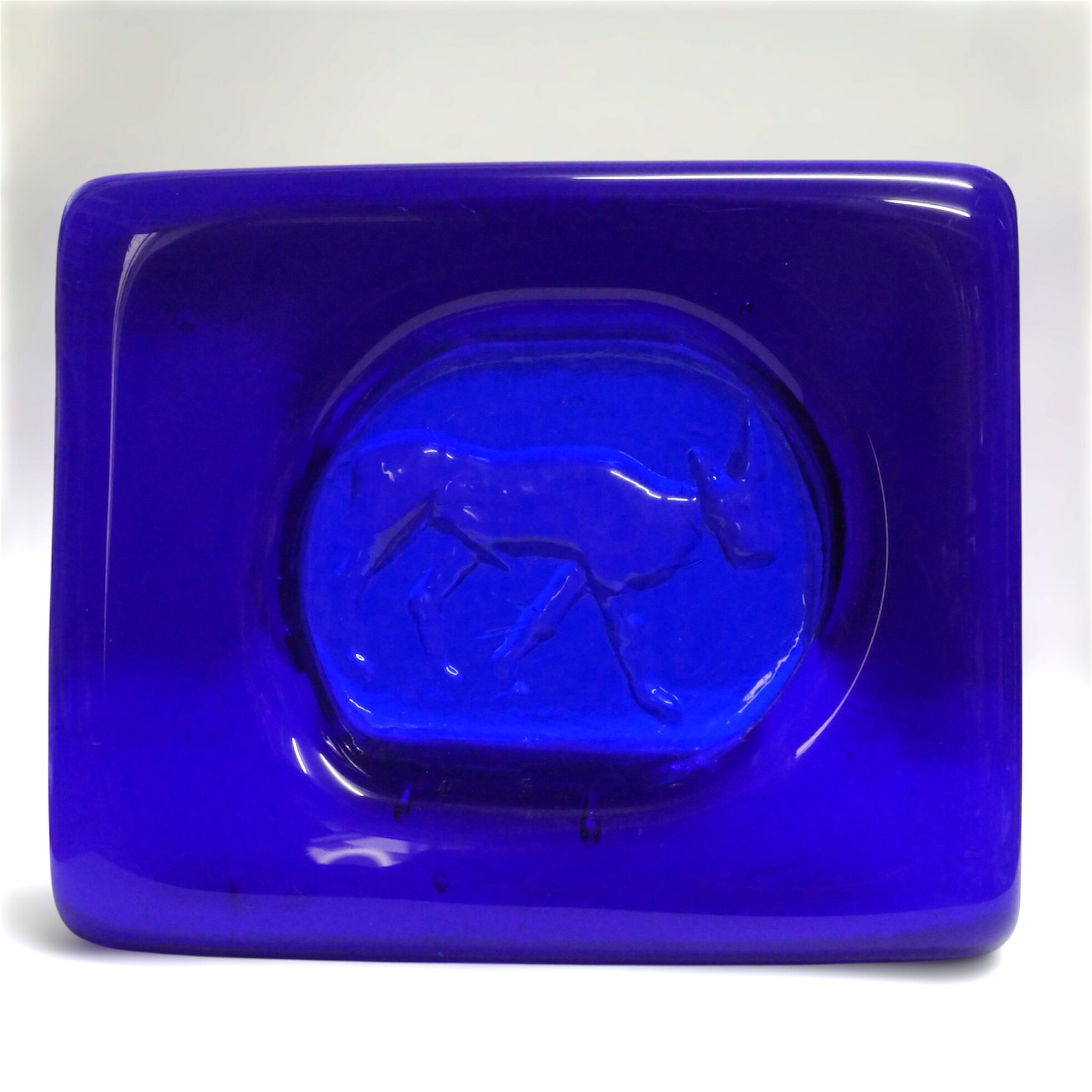 スウェーデンのガラス工芸家でデザイナーのErik Hoglund(エリック・ホグラン)の作品、ボダ社製、牡牛のアッシュトレイ/ガラスオブジェです。