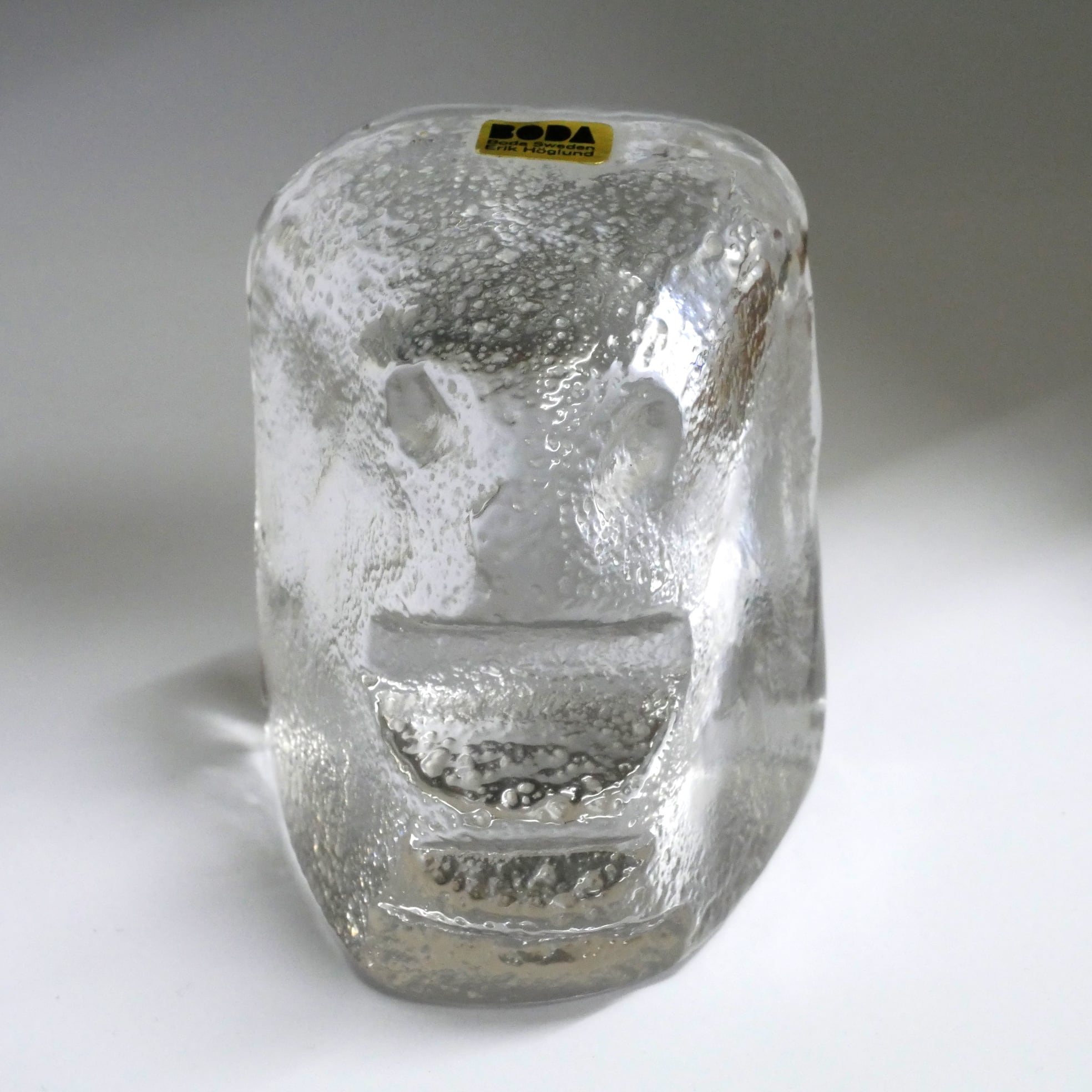 スウェーデンのガラス工芸家でデザイナーのErik Höglund (エリック・ホグラン)の作品、ボダ社製、[glass face bookend A]です。