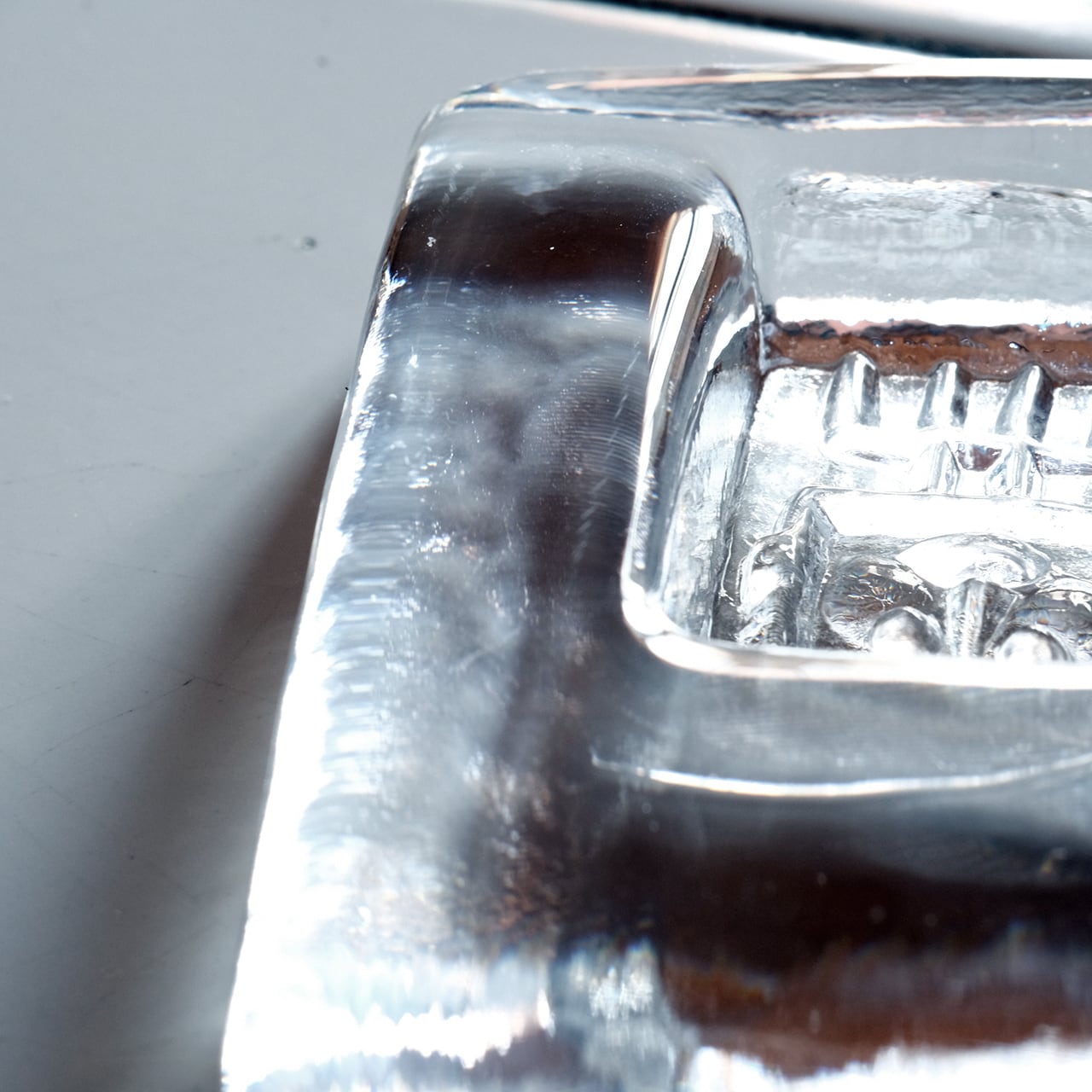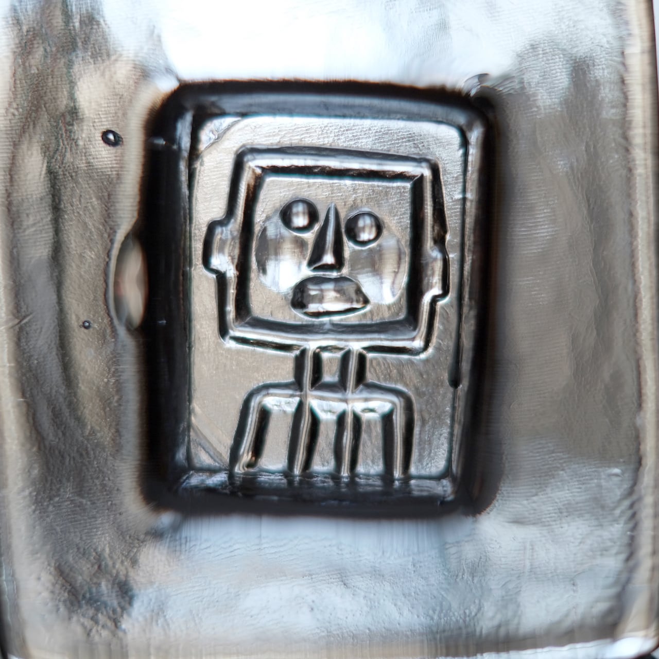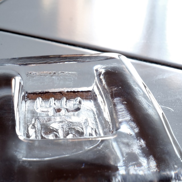 スウェーデンのガラス工芸家でデザイナーのErik Höglund (エリック・ホグラン)の作品、ボダ社製、ロボット少年のアシュトレイ[クリアー]です。