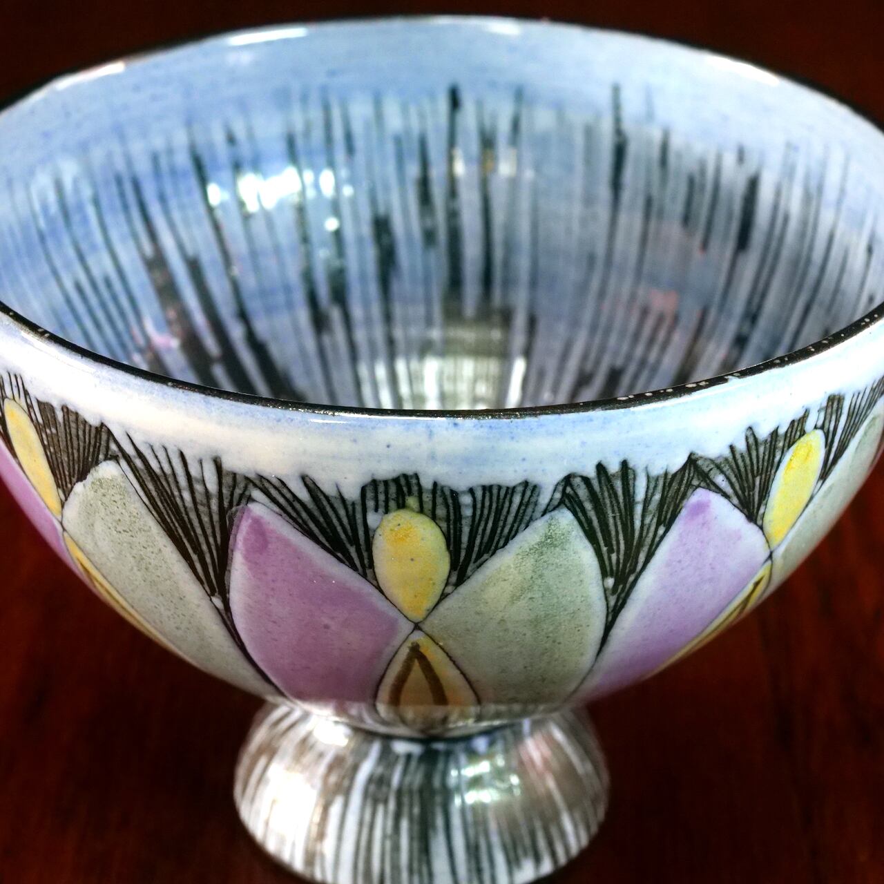ハンドペイントによる優しい色彩が印象的な、ミッドセンチュリーのボウル。