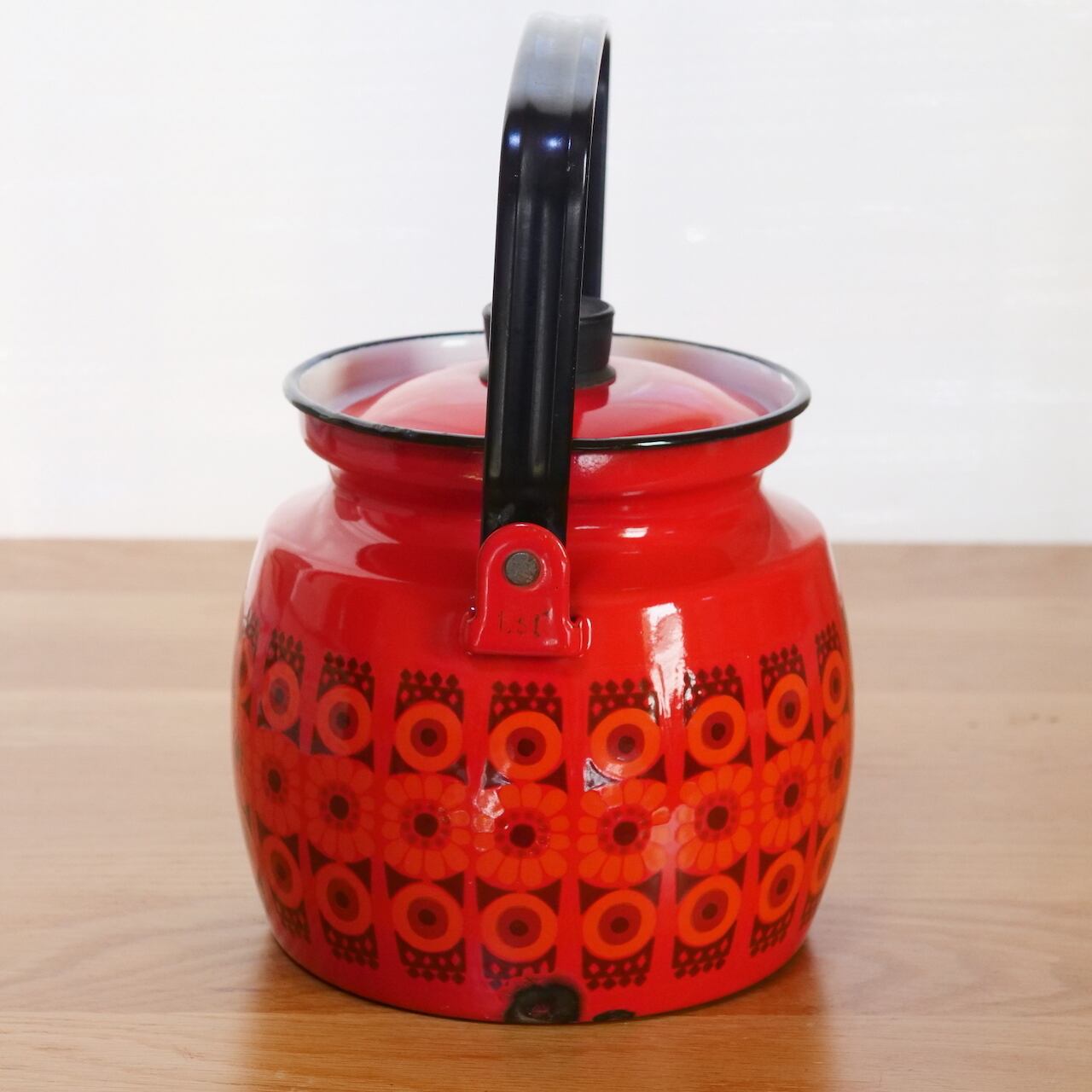 ライヤ・ウオシッキネンが60年代にデザインを手がけた、鮮やかな赤を基調にした花柄が印象的なケヘラシリーズのホーローケトル(1.5L)です。